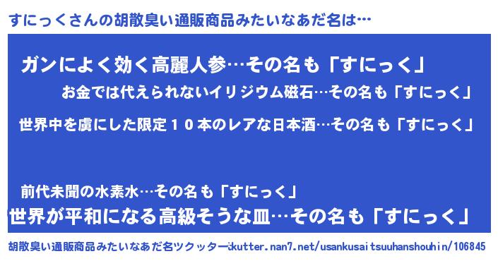 | ヘコむあだ名 | 『なまこ酢』『すにっく(爆)』 |