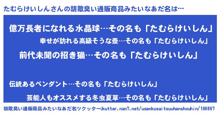 | 意味不明あだ名 | 『永久保存たむらけいしん』 |