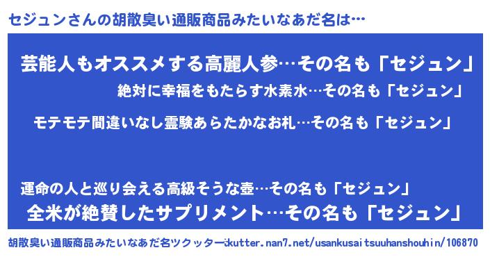 | 恥ずかしいあだ名 | 『プリティーセジュン』『セジリンリン』 |