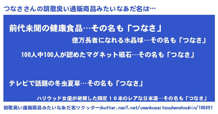 | 欧米人風あだ名 | 『アンジェラ・つなさ』『ダニエルつなさ』 |