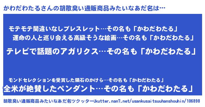 | 意味不明あだ名 | 『自称かわだわたる』 |