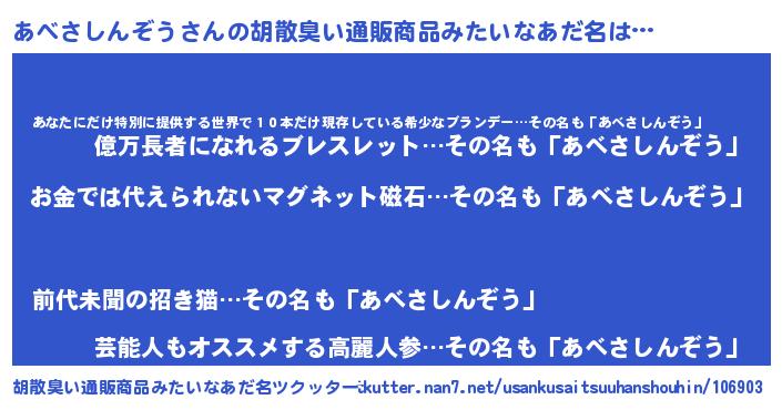 | ヘコむあだ名 | 『あべにー』『あべさしんぞう(震え声)』 |