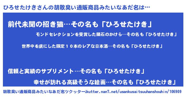 | 意味不明あだ名 | 『住所不定無職ひろせたけき(50歳)』 |