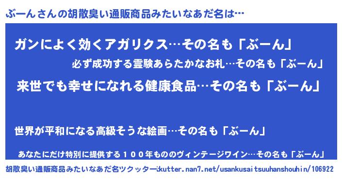 | 意味不明あだ名 | 『永久保存ぶーん』『自称ぶーん』 |