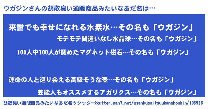 | ヘコむあだ名 | 『ウガジン(小並感)』『ウガっふぃ~』 |