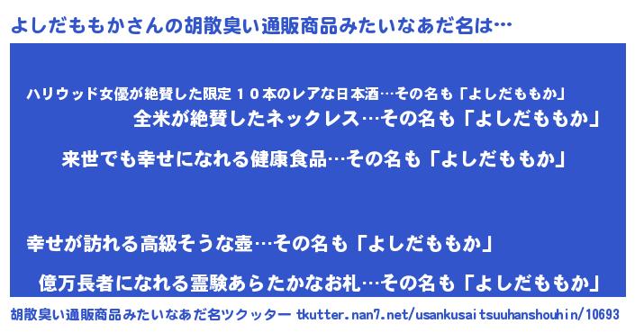 | ヘコむあだ名 | 『よしだももか(笑)』『よしふぇ~』 |