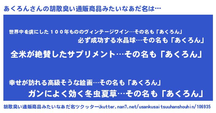 | 意味不明あだ名 | 『とにかく怪しいあくろん』 |