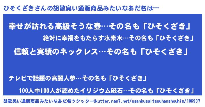 | 意味不明あだ名 | 『とにかく怪しいひそくざき』 |
