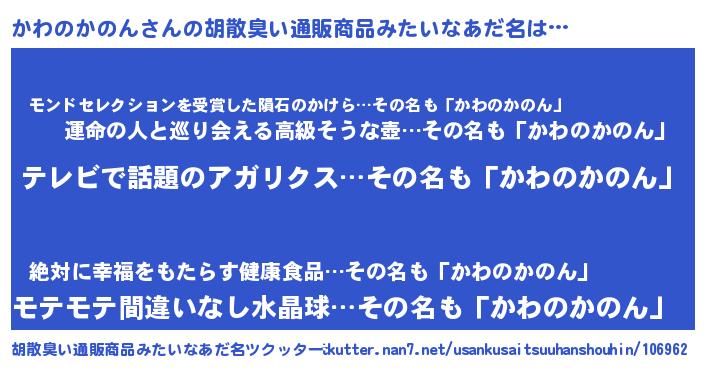 | 意味不明あだ名 | 『自称かわのかのん』 |