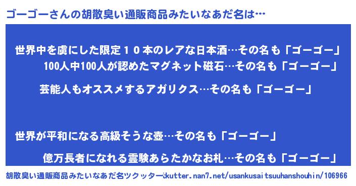 | 意味不明あだ名 | 『自称ゴーゴー』『エリンギ科ゴーゴー属』 |