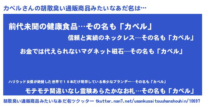 | ヘコむあだ名 | 『カペル(笑)』『カペふぇ~』 |