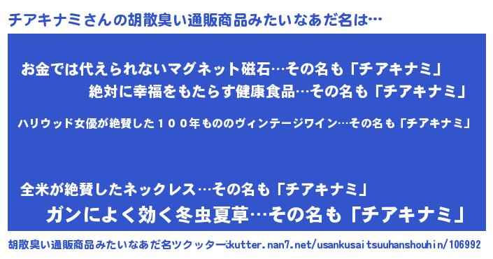| ヘコむあだ名 | 『チアキナミ(笑)』『チアお』 |