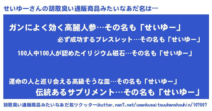 | 伝説のあだ名 | 『人々から恐れられる占い師せいゆー』 |