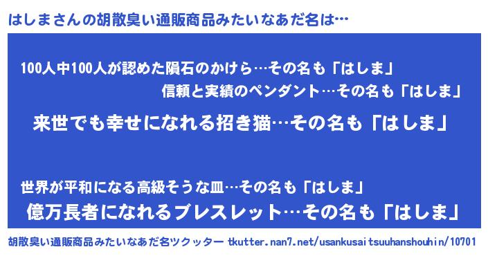 はしまさんの胡散臭い通販商品みたいなあだ名をツクッター!