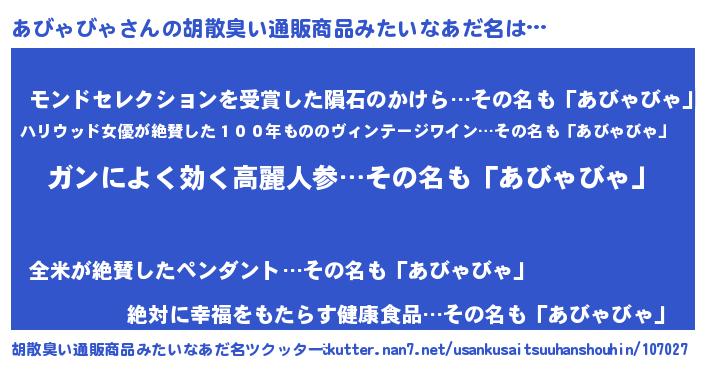| 意味不明あだ名 | 『自称あびゃびゃ』『永久保存あびゃびゃ』 |