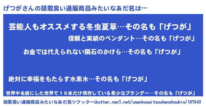 | ヘコむあだ名 | 『げつっちょ』『げつが(苦笑)』 |