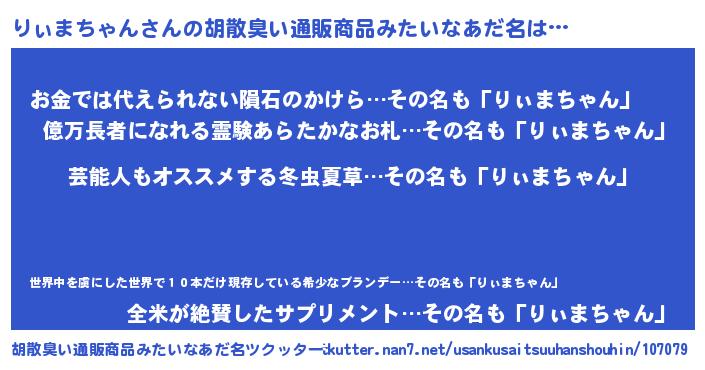 | 男性向けラノベタイトル風あだ名 | 『Re:りぃまちゃんから始める異世界生活』 |