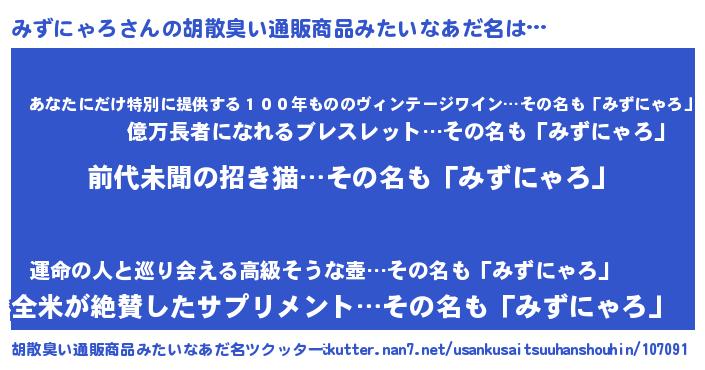 | 意味不明あだ名 | 『永久保存みずにゃろ』 |