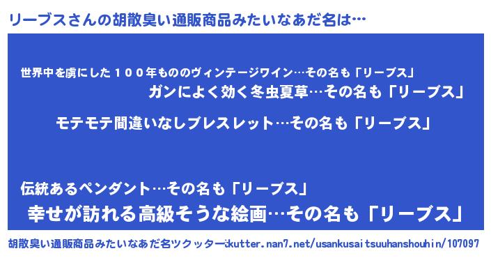 | 男性向けラノベタイトル風あだ名 | 『リーブスの憂鬱』『緋弾のリーブス』 |