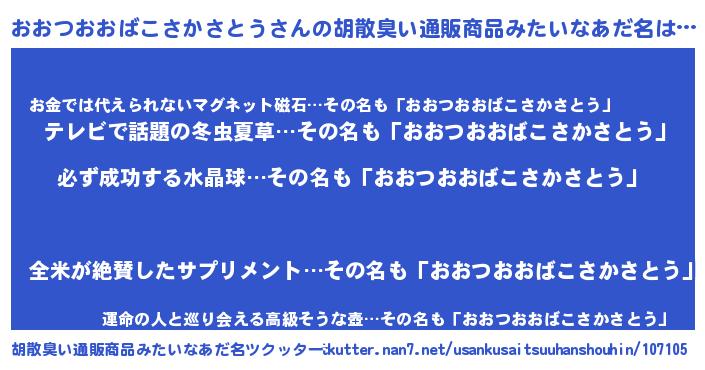 | 男性向けラノベタイトル風あだ名 | 『おおつおおばこさかさとうの憂鬱』 |