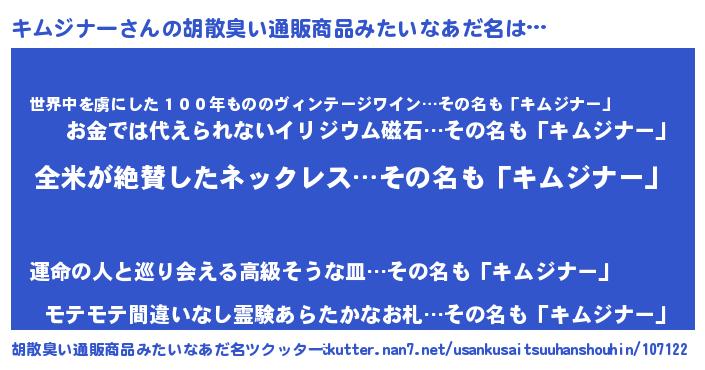 | 意味不明あだ名 | 『とにかく怪しいキムジナー』 |