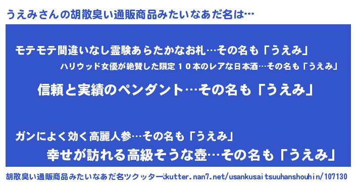 | 意味不明あだ名 | 『とにかく怪しいうえみ』 |