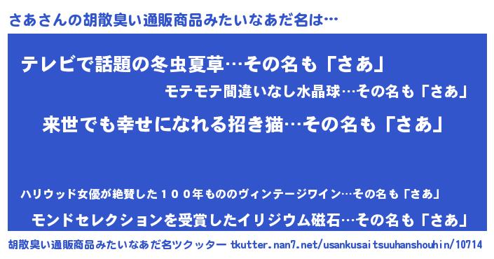 | 意味不明あだ名 | 『永久保存さあ』『自称さあ』 |
