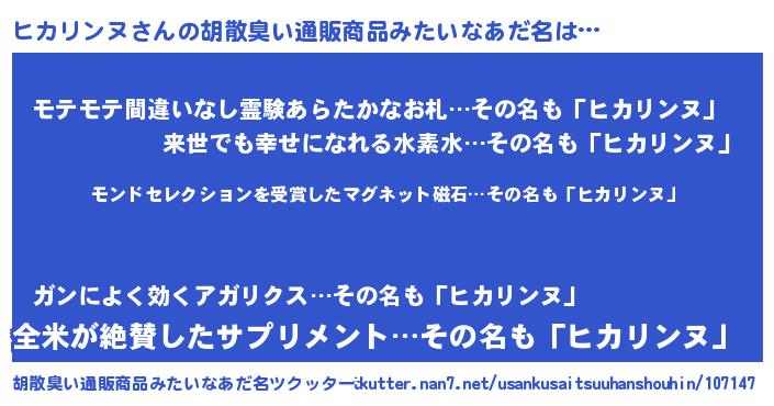 | ヒーロー風カッコイイあだ名 | 『慈愛の使者ヒカリンヌ』『幻影騎士ヒカ』 |