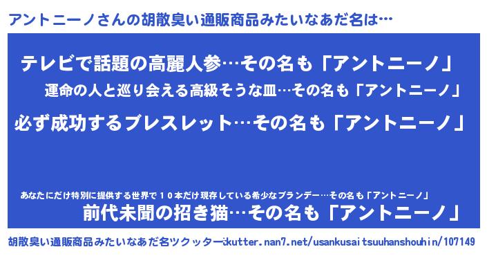 | ヘコむあだ名 | 『アンにー』『アントニーノ(笑)』 |