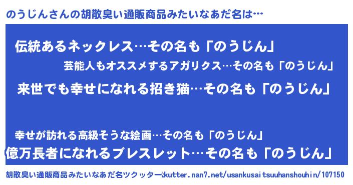 | 意味不明あだ名 | 『永久保存のうじん』『ペロリンのうじん』 |