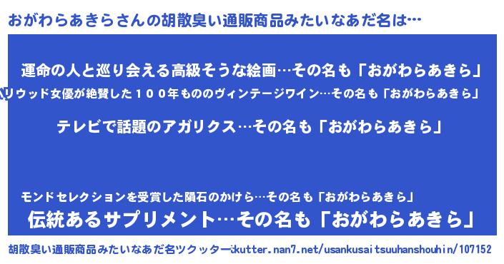 | 意味不明あだ名 | 『自称おがわらあきら』 |