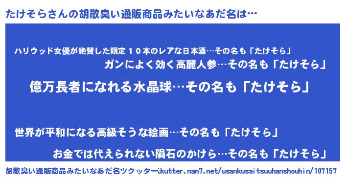 | 意味不明あだ名 | 『ペロリンたけそら』『自称たけそら』 |