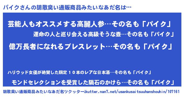 | 意味不明あだ名 | 『ペロリンパイク』『自称パイク』 |