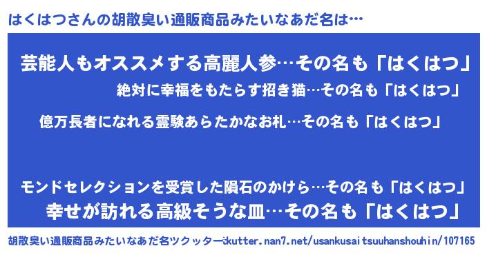 | ツイッター | はくはつさんのツイッターID『namakemono_kun』 |