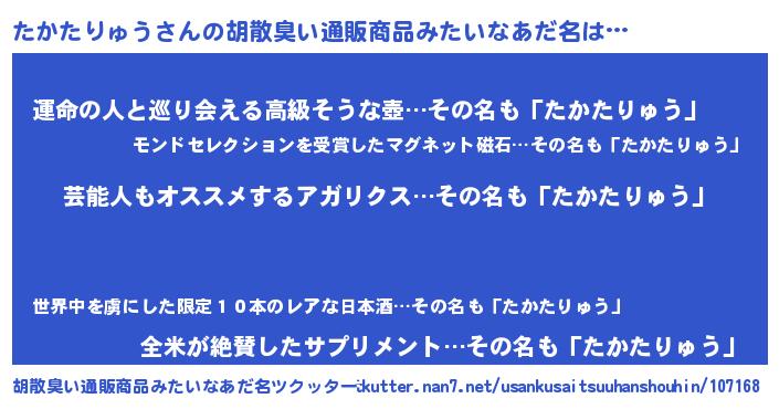 | 意味不明あだ名 | 『自称たかたりゅう』 |