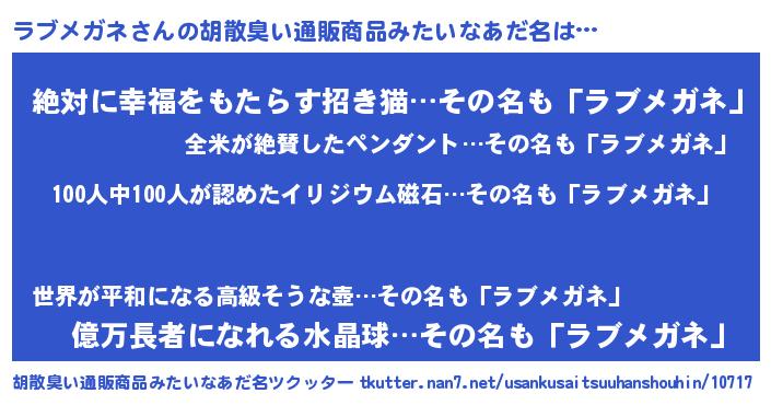 | ヘコむあだ名 | 『ラブメガネ(笑)』『ラブふぇ~』 |