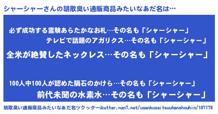 | ヘコむあだ名 | 『シャっぺ』『シャっふぃ~』 |