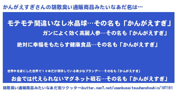 | 意味不明あだ名 | 『永久保存かんがえすぎ』 |
