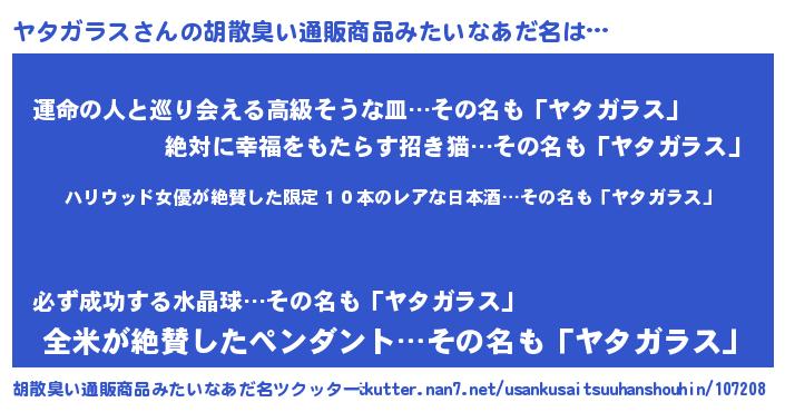| 男性向けラノベタイトル風あだ名 | 『はたらくヤタガラスさま!』 |