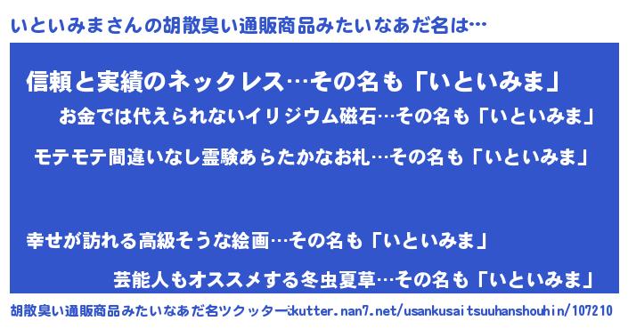 | 男性向けラノベタイトル風あだ名 | 『はたらくいといみまさま!』 |