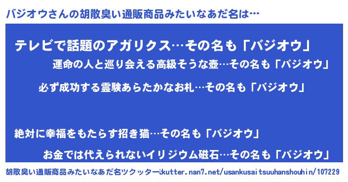 | 男性向けラノベタイトル風あだ名 | 『バジオウの憂鬱』 |