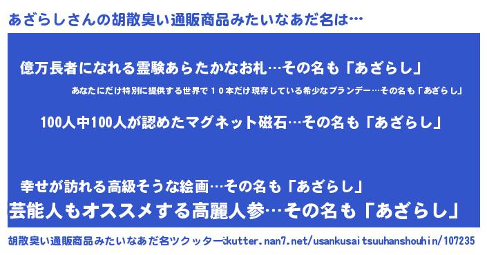 | 可愛いあだ名 | 『あざちゅっちゅ』『あざぷりん』 |