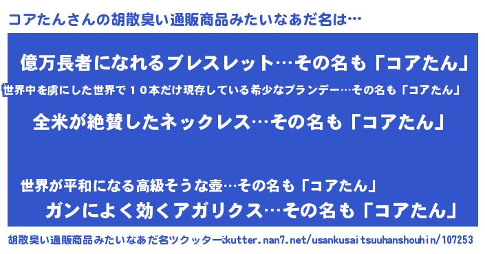 | ヘコむあだ名 | 『コアっぺ』『コアにー』『牛乳』 |