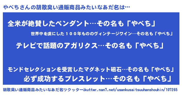 | 意味不明あだ名 | 『自称やべち』『とにかく怪しいやべち』 |