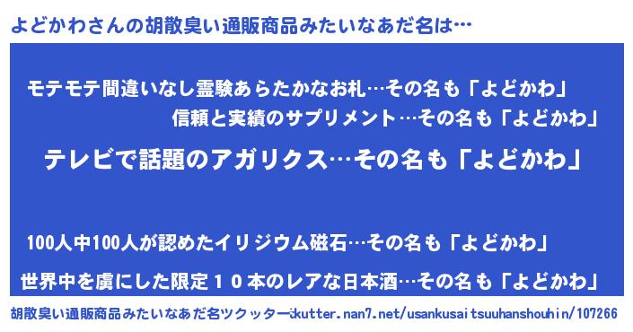 | 男性向けラノベタイトル風あだ名 | 『転生したらよどかわだった件』 |