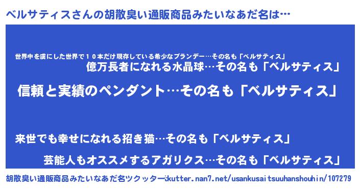 | 意味不明あだ名 | 『とにかく怪しいベルサティス』 |