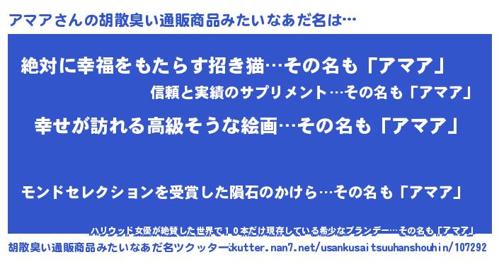 | 意味不明あだ名 | 『アマアフォーエバー』『永久保存アマア』 |
