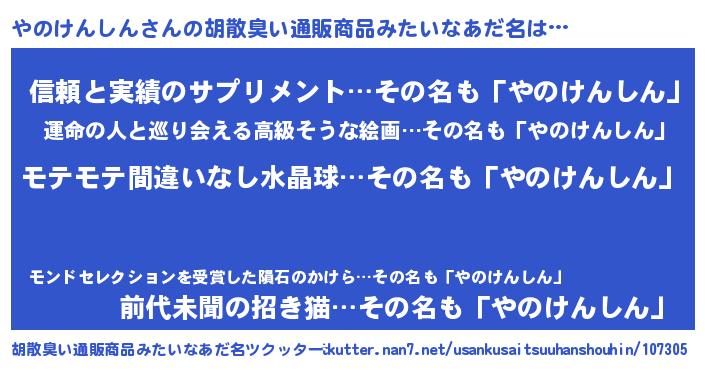 | 欧米人風あだ名 | 『マイケルやのけんしん』 |