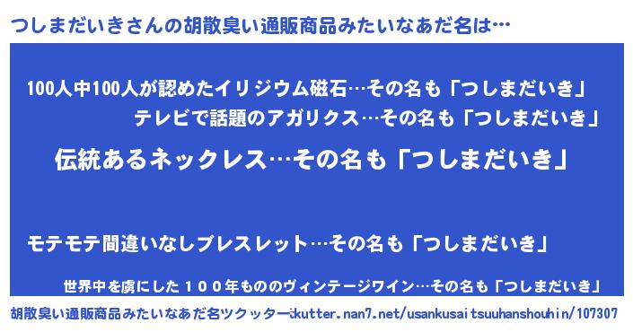 つしまだいきさんの胡散臭い通販商品みたいなあだ名をツクッター!