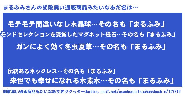 | ヘコむあだ名 | 『まるっふぃ~』『まるふみ(小並感)』 |
